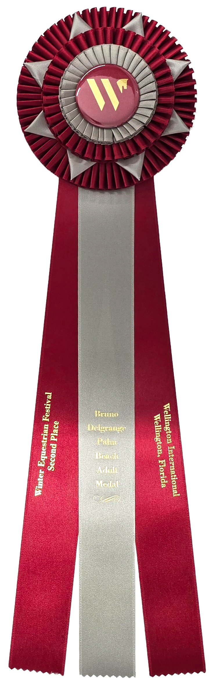 C-140 / C-5 Triple Rosette Award Ribbon (3 Streamers) This tiered triple rosette ribbon delivers standout depth and dimension. It features a 6.5" pleated outer rosette, a centered 4.5" pleated rosette, and a miniature rosette outlining the button center for your logo. Made in the USA with imported & domestic materials, it’s finished with three long streamers (in your choice of length) and can be customized with foil imprinting for your show name, class, and placing. Customize options: Ribbon color selection Choose streamer length Custom text (class, placing, sponsor, date, etc.) Foil stamping color: Gold, Silver, or Black Logo: full-color printed or foil-stamped (foil stamp die is an additional charge)